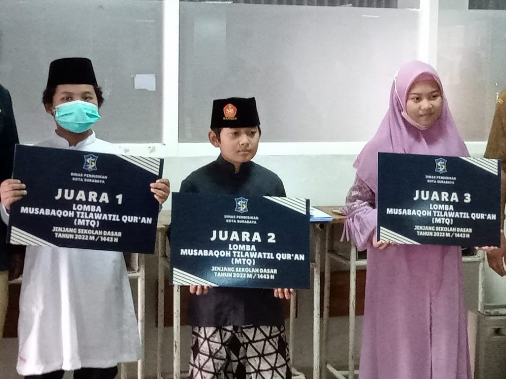 SEKOLAHKREATIF.COM – Muhammad Hamid Rahadi Kafi, siswa kelas IV Sekolah Kreatif SD Muhammadiyah 16 Surabaya, meraih juara I Musabaqah Tilawatil Quran (MTQ) tingkat Kota Surabaya. Juara II dimenangkan oleh Mas Muhammad Amru dari SD Negeri Jagir 1 Surabaya dan juara III direbut Alvenia Darlene Salvira dari SDN Rangkah 6 Surabaya.