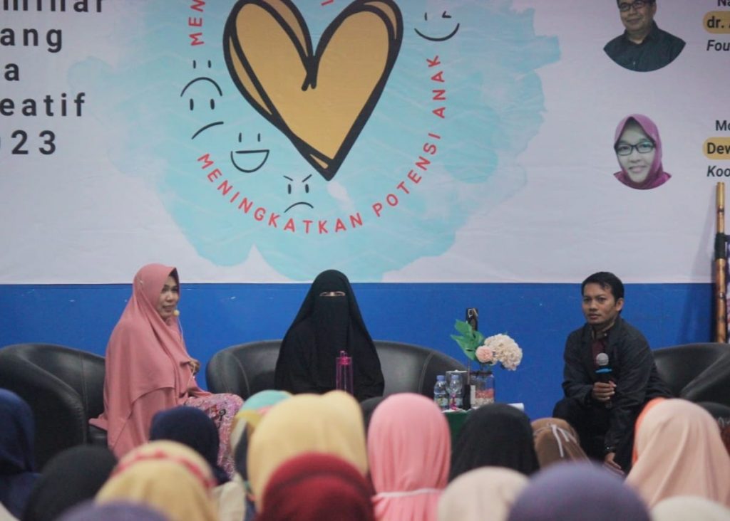 SEKOLAHKREATIF.COM – Pipik Dian Irawati yang akrab dipanggil Umi Pipik berbagi pengalaman dalam mendidik dan membersamai buah hati dalam sharing session Seminar Orangtua Kreatif 2023, Sabtu (28/1/2023).